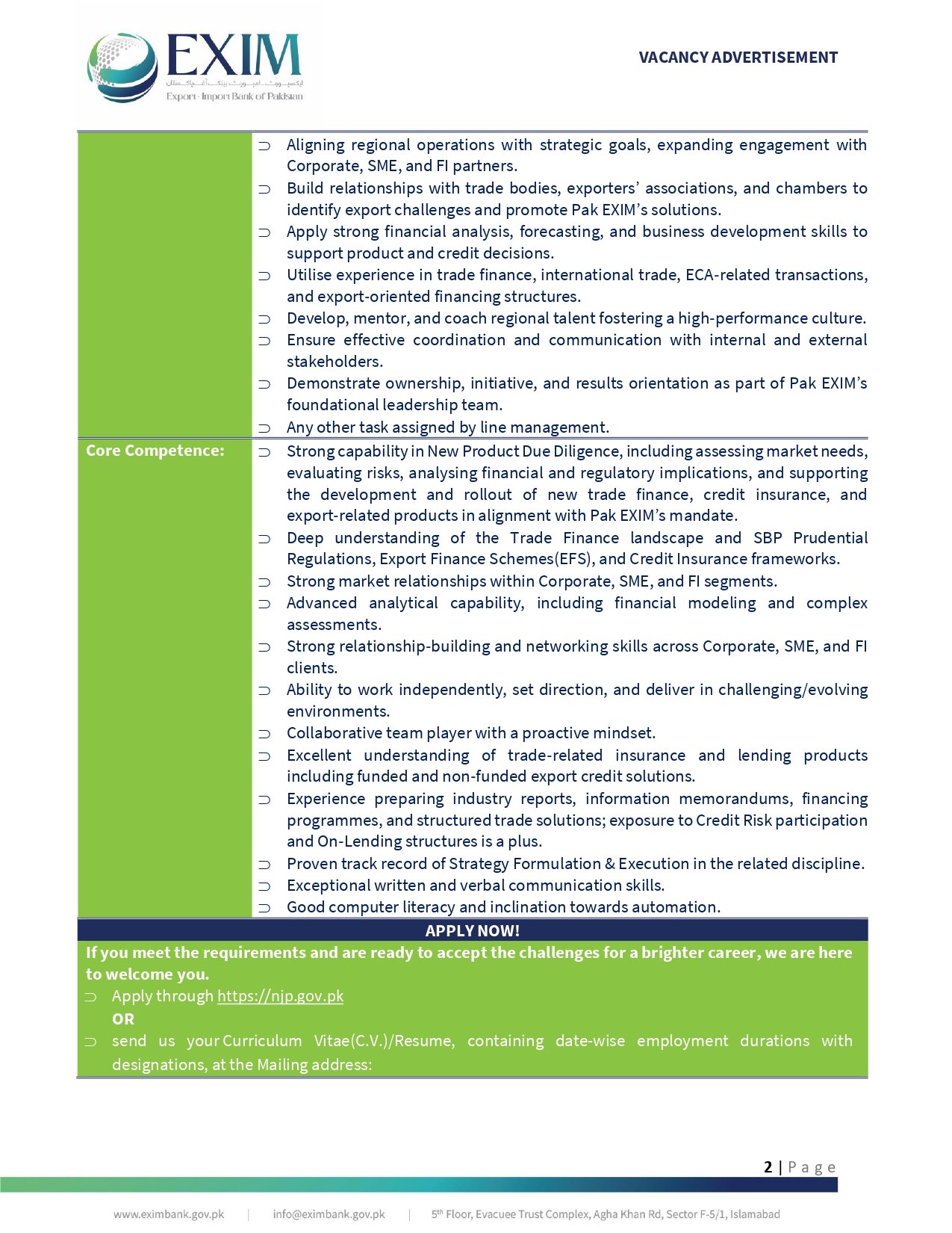 To ensure only the most qualified professionals are selected for the Regional Business Manager role at EXIM Bank of Pakistan, the following criteria have been established: