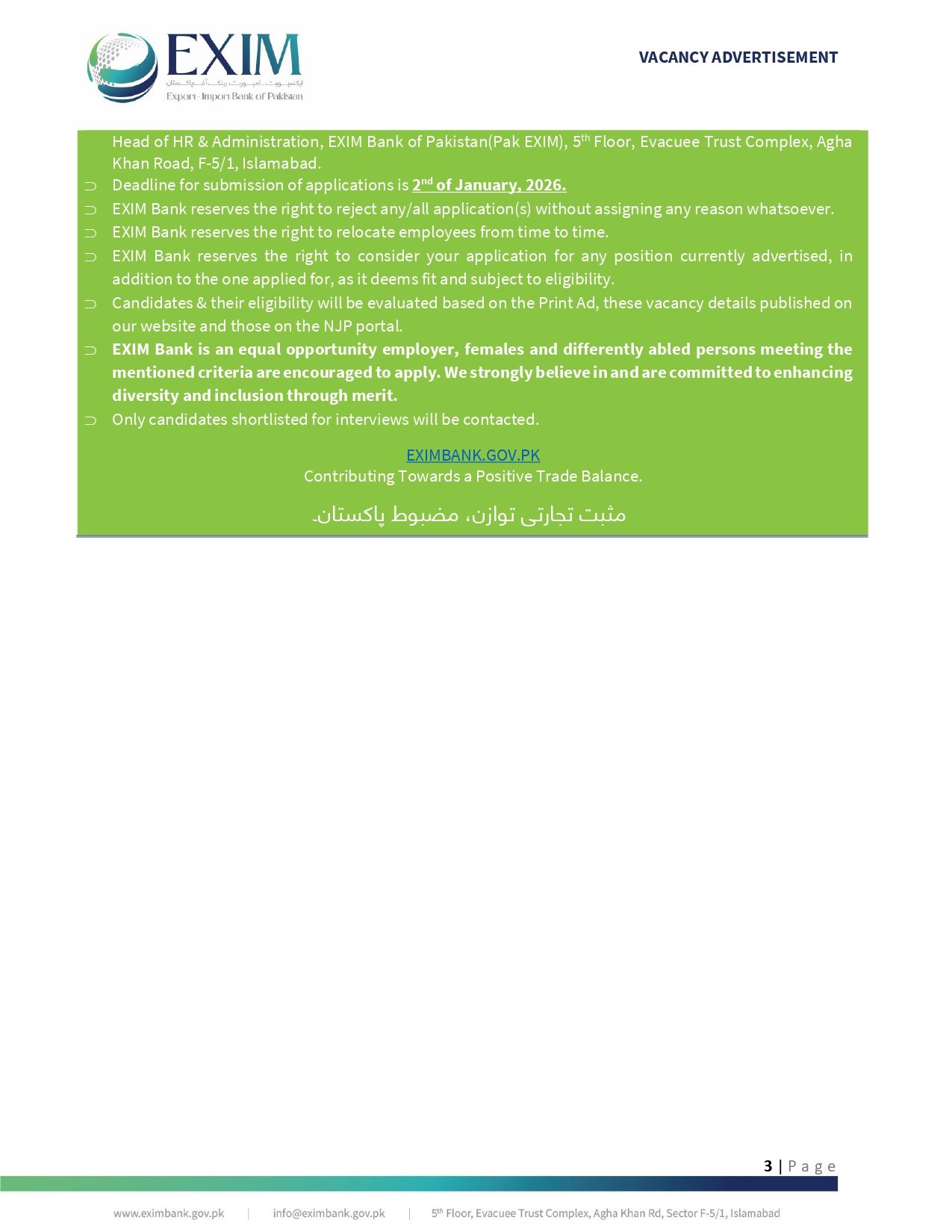 EXIM Bank Regional Manager Jobs 2026. The Export-Import Bank of Pakistan (EXIM Bank) is a premier federal government institution dedicated to boosting the nation’s international trade through specialized financial services. This prestigious organization is currently seeking a highly skilled and experienced Regional Business Manager to join its dynamic team on a regular basis. This M4 grade position is perfect for professionals looking to make a significant impact on Pakistan’s export economy. With several vacancies available, the bank is searching for visionary leaders who can drive business growth and manage regional operations effectively. Interested candidates must apply before the deadline on January 03, 2026, to secure this high-level career path.